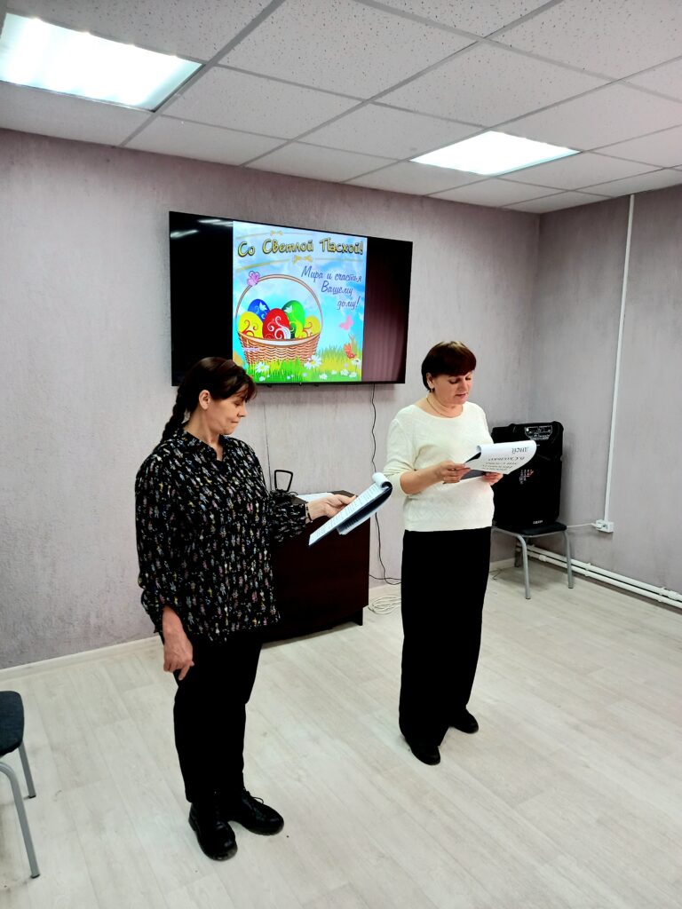 Продолжили праздничное мероприятие специалисты Центральной районной библиотеки – Бушуева Светлана и Свиридина Ирина, которые дополнили информацию об истории и традициях празднования Пасхи. А за накрытым столом продолжили общение, с удовольствием пели песни под аккомпанемент баяна в исполнении Мельникова Владимира Васильевича.