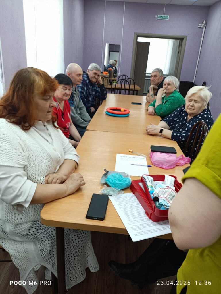 Так как 7 апреля отмечался Всемирный день Здоровья занятие кружка «Позитивчик» которое подготовила Крутакова Валентина Васильевна, началось с утренней оздоровительной гимнастики. Далее всем пришлось поднять настроение прыгая со скакалкой, вспоминая детские годы. Даже те, у кого плохо получалось, не успокаивались и настойчиво пытались преодолеть возрастные изменения. Участники кружка вновь из пенсионеров превратились в пионеров. Также Валентина Васильевна подготовила небольшие викторины, пословицы и поговорки. Поиграли в игру «угадай предмет наощупь», вспомнили песни, связанные с тематикой здоровья. На прощание Валентина Васильевна угостила продуктивно позанимавшихся витаминами для здоровья.