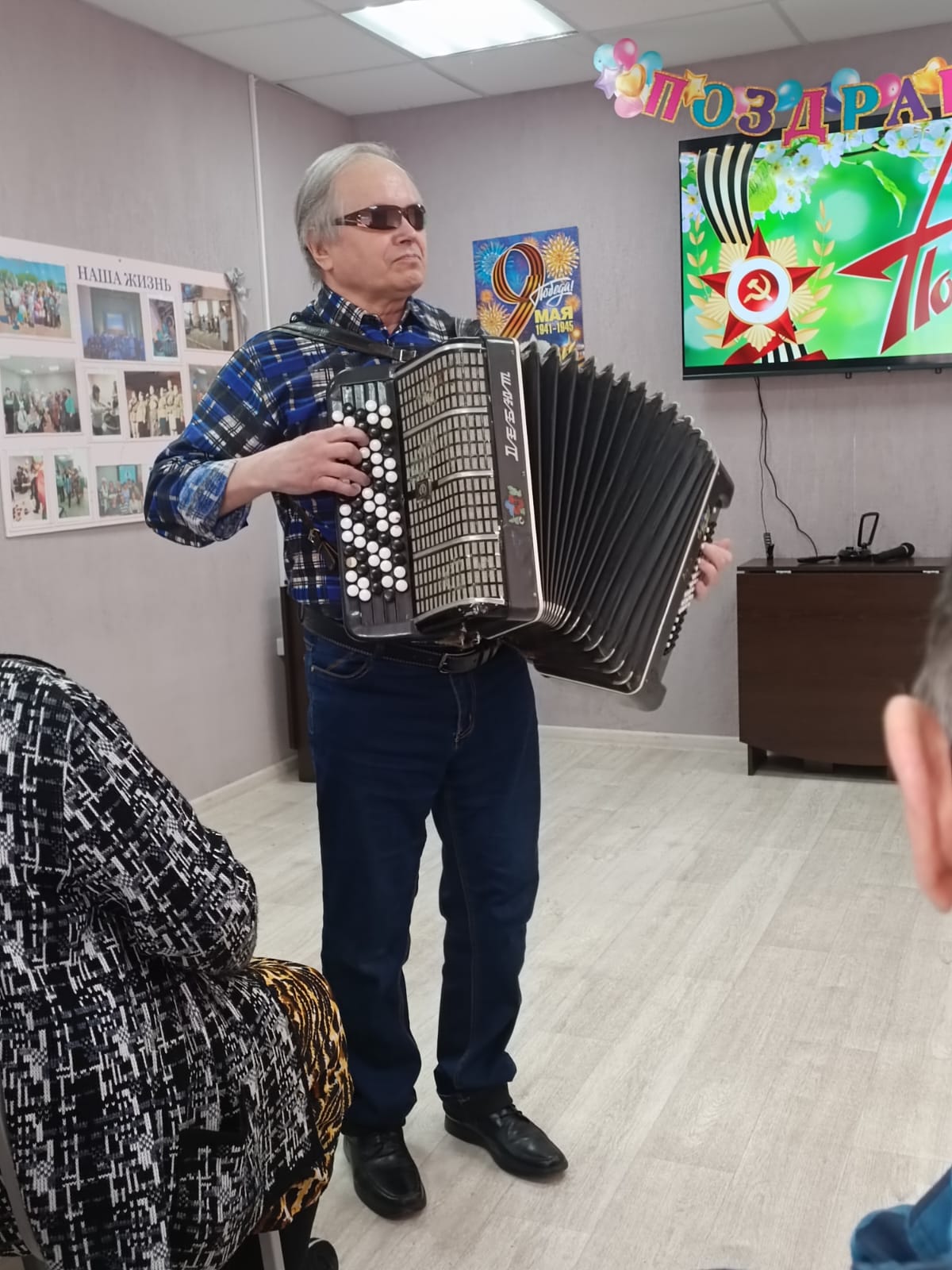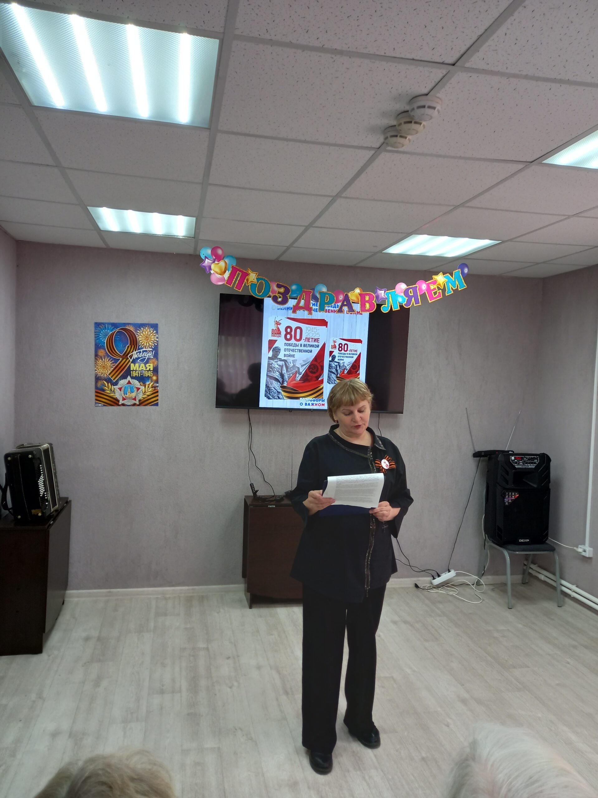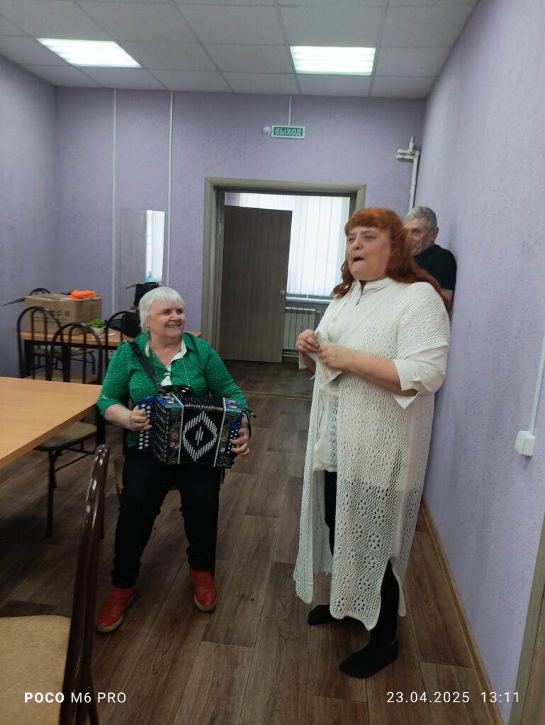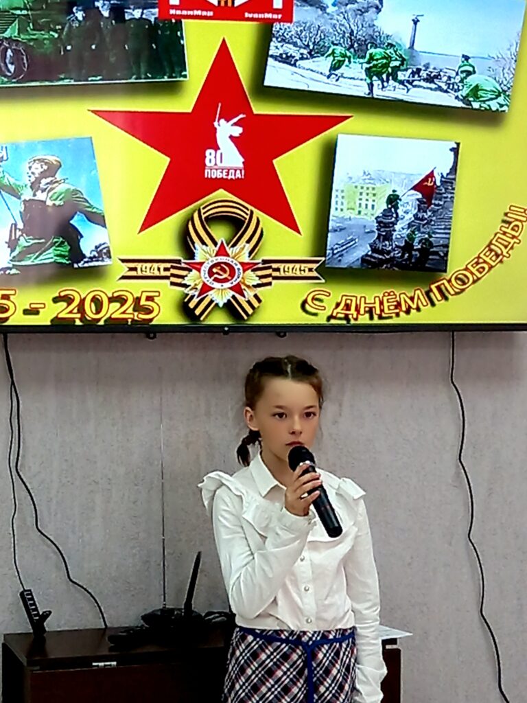 Пронзительные и трогательные стихи прочитали Галина Никитина, Екатерина и Иван Стафеевы. Вокальная группа «Слияние поколений» также не осталась в стороне. Звучали песни военных лет в исполнении Марины Стапцовой и Екатерины Яковлевой. Владимир Васильевич Мельников порадовал игрой на баяне, исполнив мелодии всем знакомых песен военных лет, а все желающие с удовольствием ему подпевали.